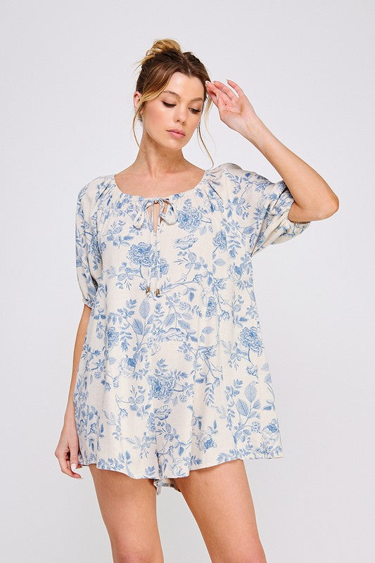 Printed Linen Oversized Romper