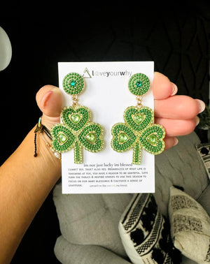 The cutest little shamrock earrings. They measure 2.5” long and 1.5” wide!